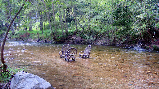 This is a grassy area between the deck and the river. Clearly these were taken in fall so this isn't exactly what it looked like, but you get the idea. And, no, I have no idea who that lady is but it was the best pic I could find looking up at the deck of the Inn.